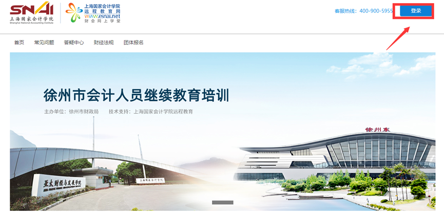 (1)打开徐州市会计专业技术人员网络继续教育网址:xzcz.ce.esnai.net培训首页,右上角为学员“登录区”,点击“登录”。