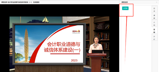 (2)播放学习:点击蓝色“播放”按钮,进入课程播放页面。