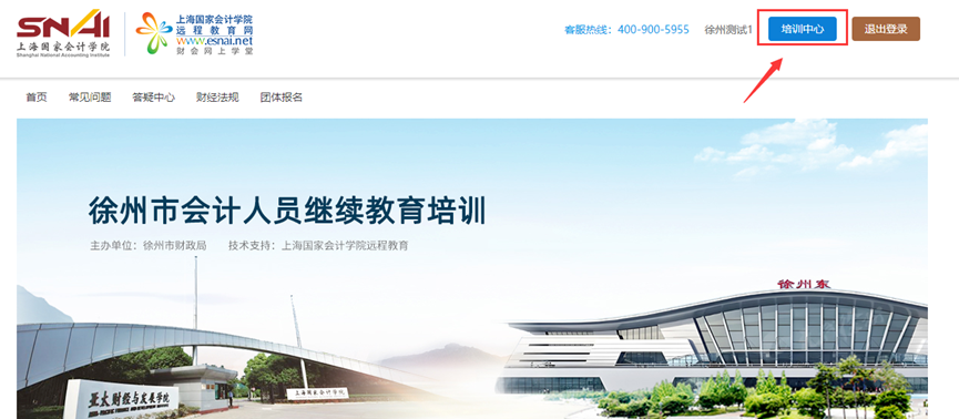 (4)点击右上角“培训中心”,进入培训中心页面。